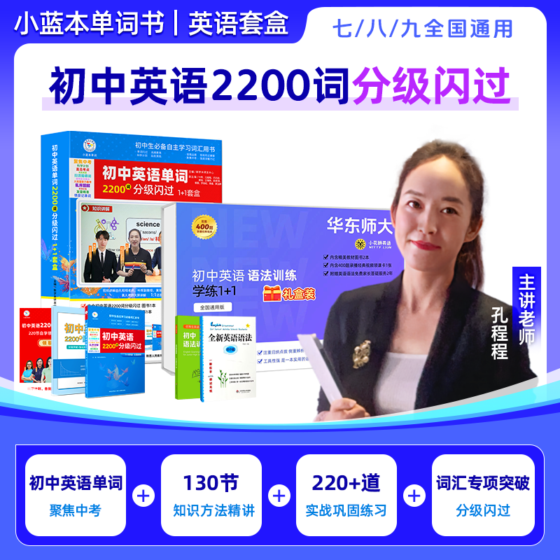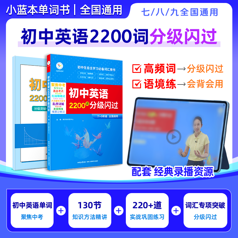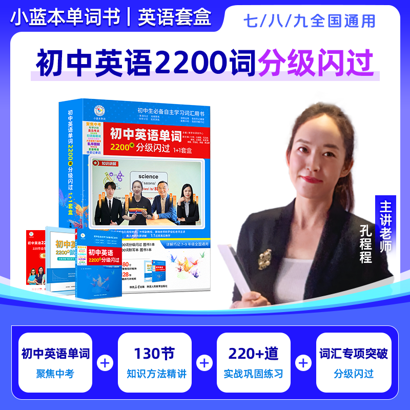 初中英语必背闪过2200词 全国通用2025小蓝本单词 孔程程老师主讲中考单词书默写本教辅书130节视频讲解答疑伴学 中考必背单词