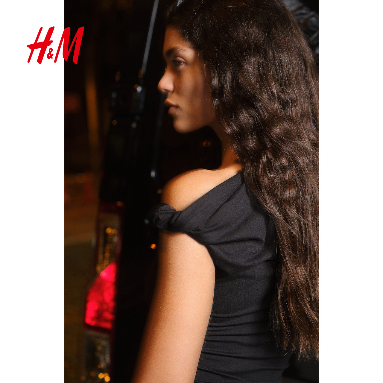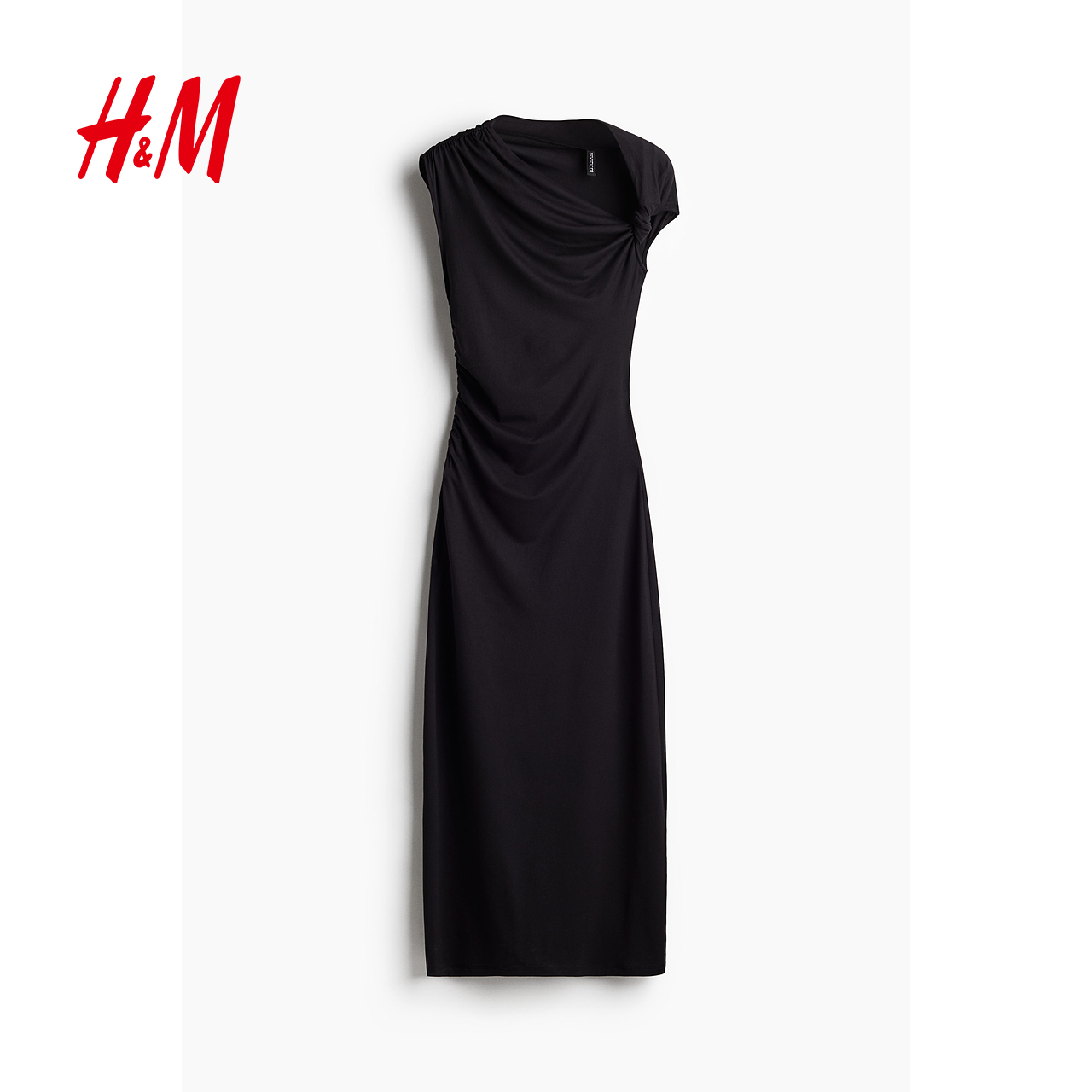 收腰扭结单肩礼服裙1265423 斜肩型修身 HM女装 背心吊带连衣裙夏季