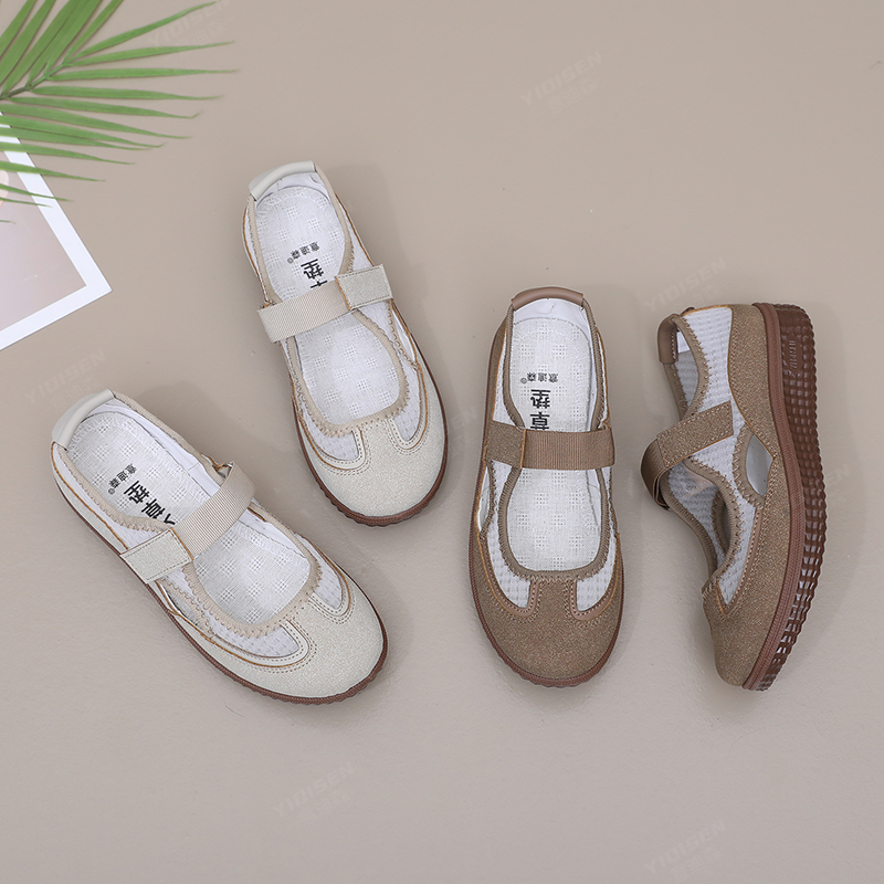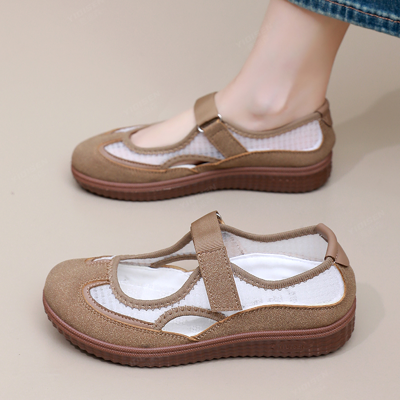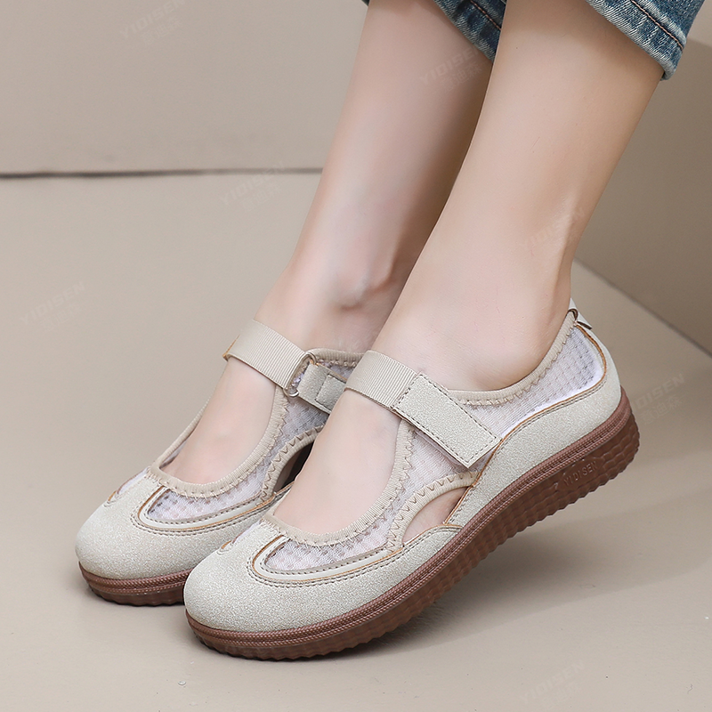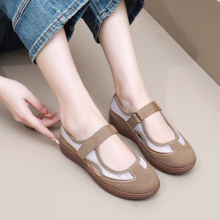 圆头休闲鞋 魔术贴玛丽珍平底乐福鞋 舒适一脚蹬 透气新款 2025年夏季