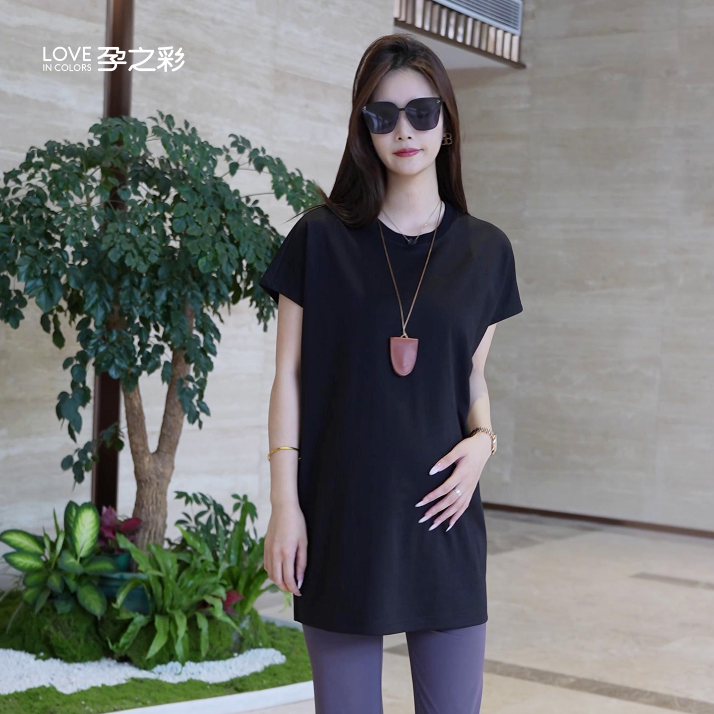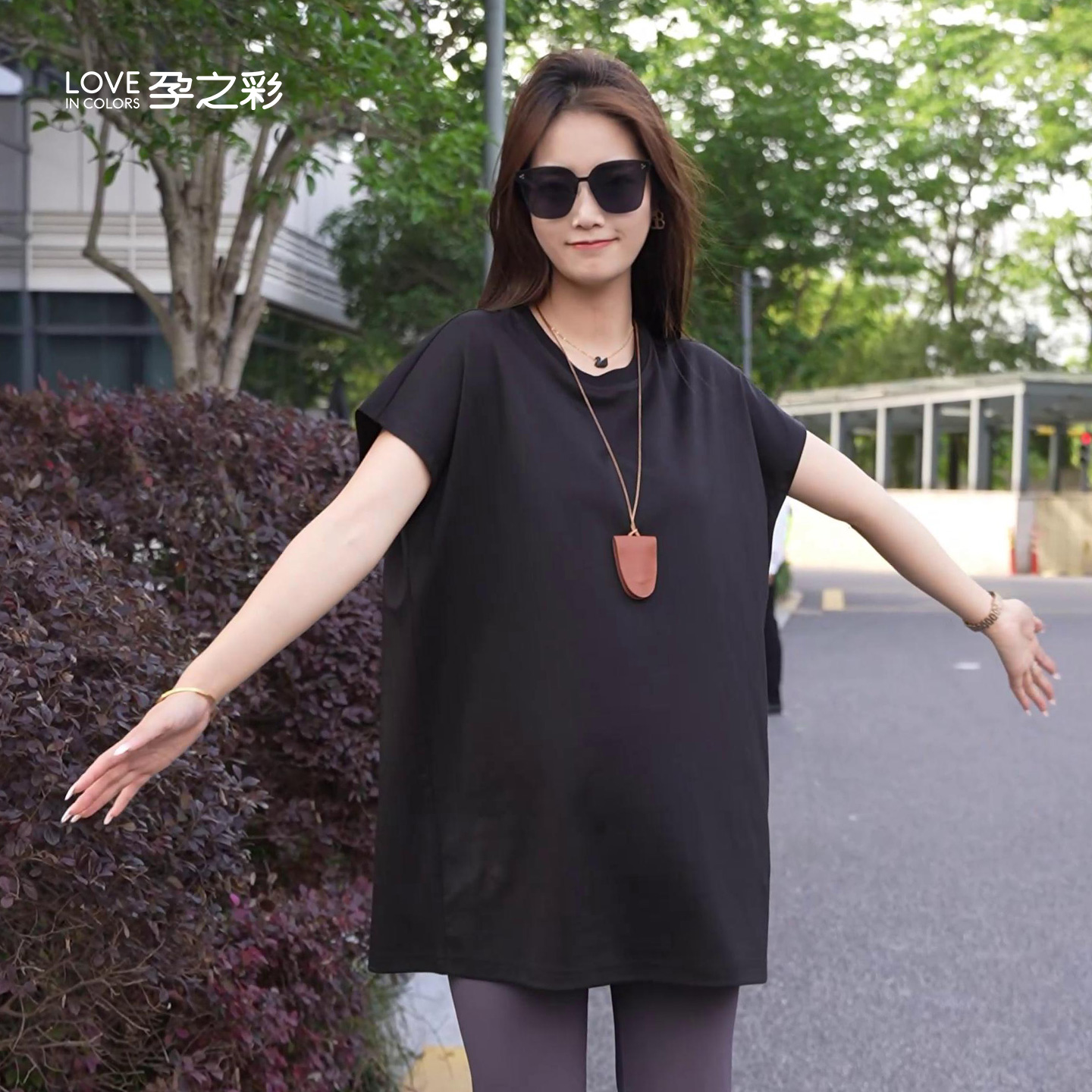 女宽松大码 遮盖屁股短袖 胖M圆领纯色T恤 上衣中长款 孕之彩孕妇夏季