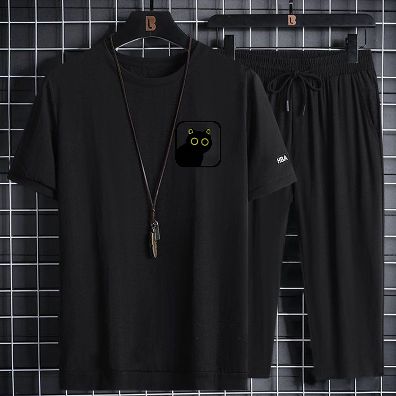 套装 学生休闲套装 T恤衫 夏季 短袖 两件套运动短袖 帅气长裤 男士 时尚