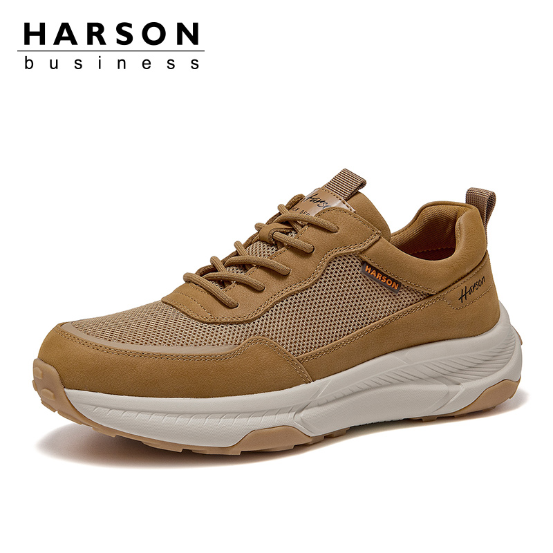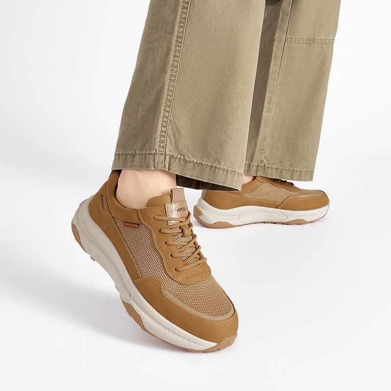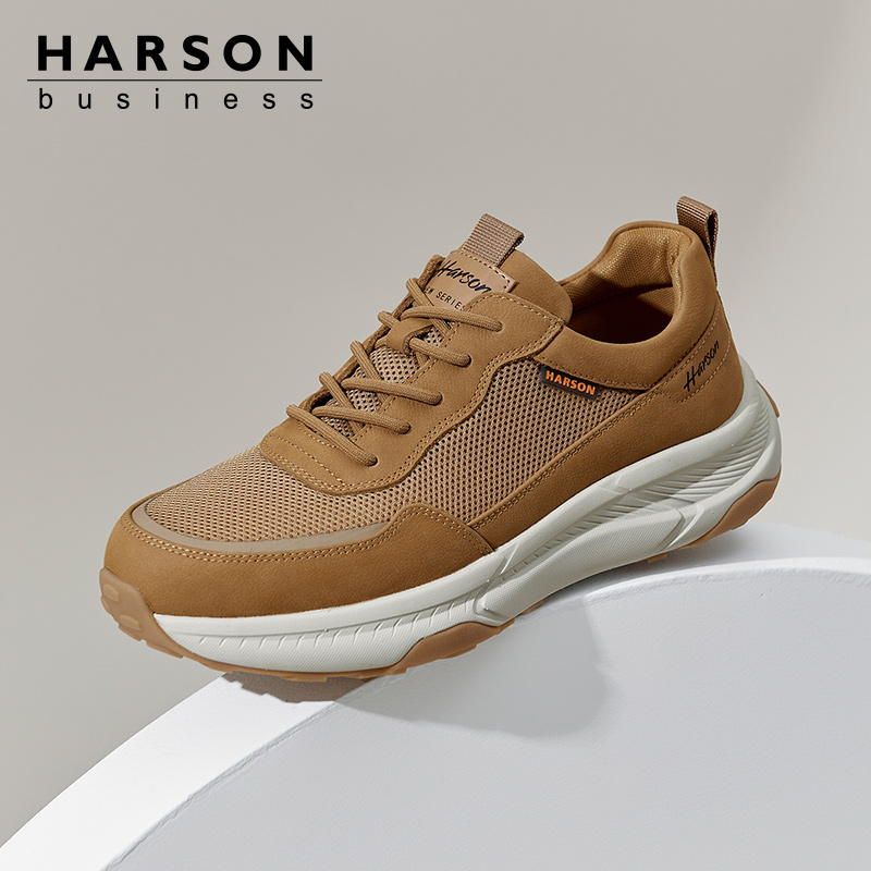 网面运动休闲鞋 透气薄款 男士 厚底板鞋 男 哈森男鞋 镂空运动凉鞋 秋季