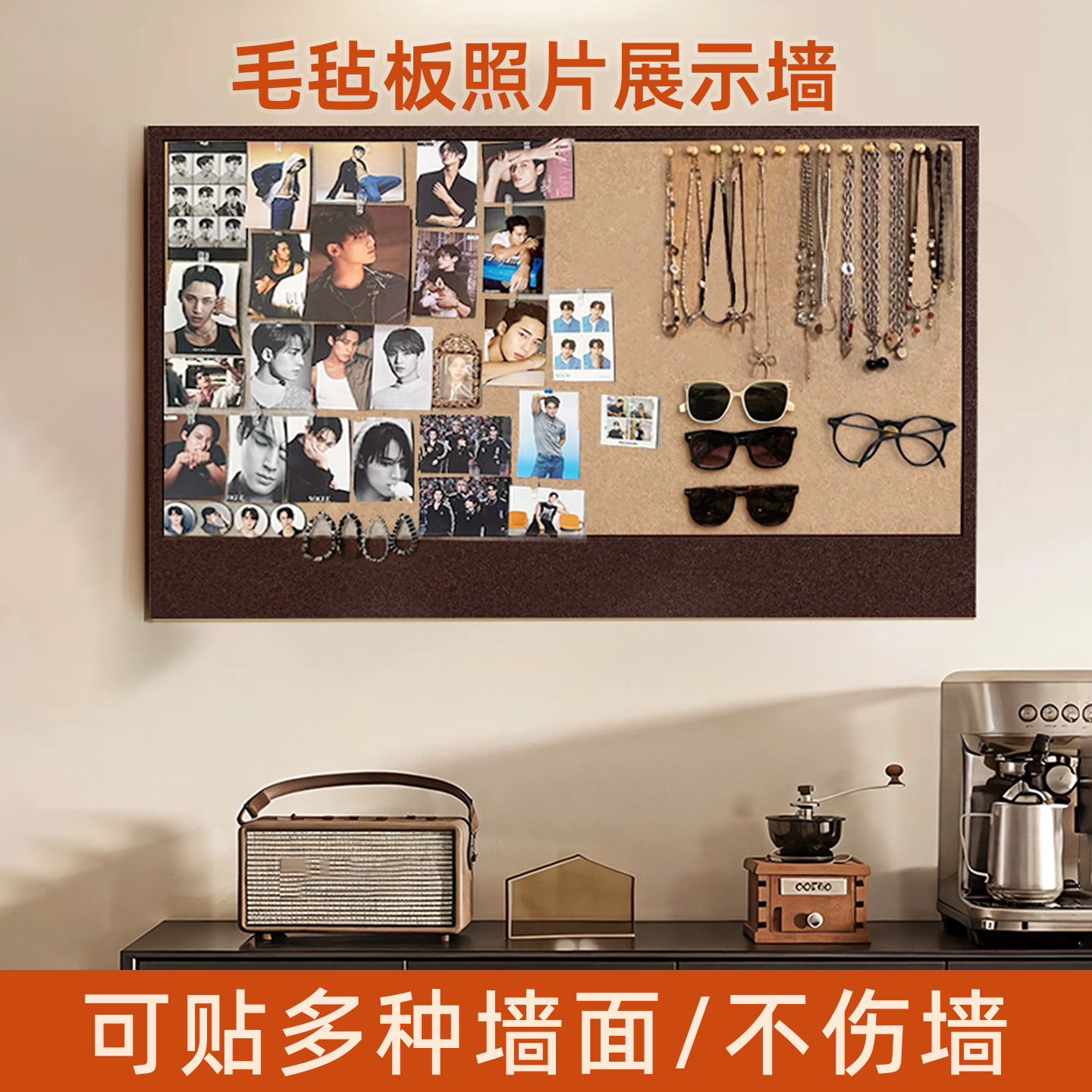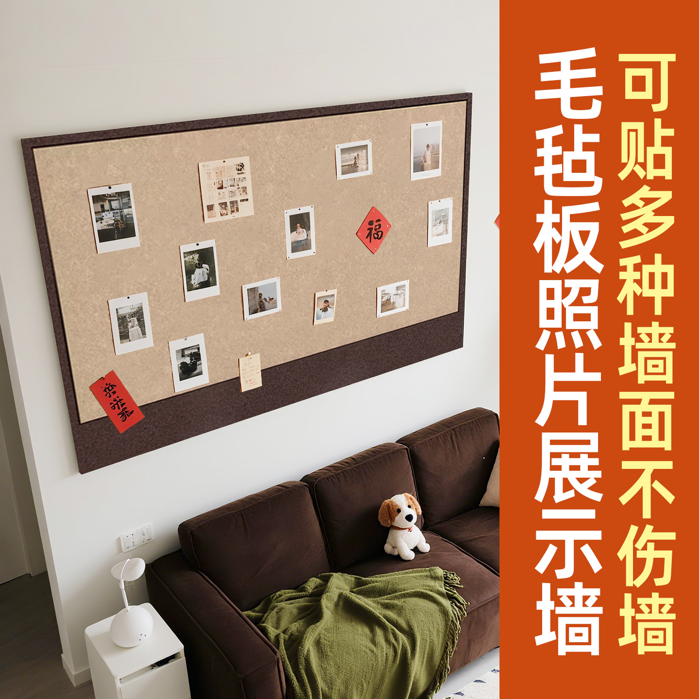 毛毡板照片展示装 饰背景墙贴免打孔不伤墙拍立得羊毛毡软木留言板