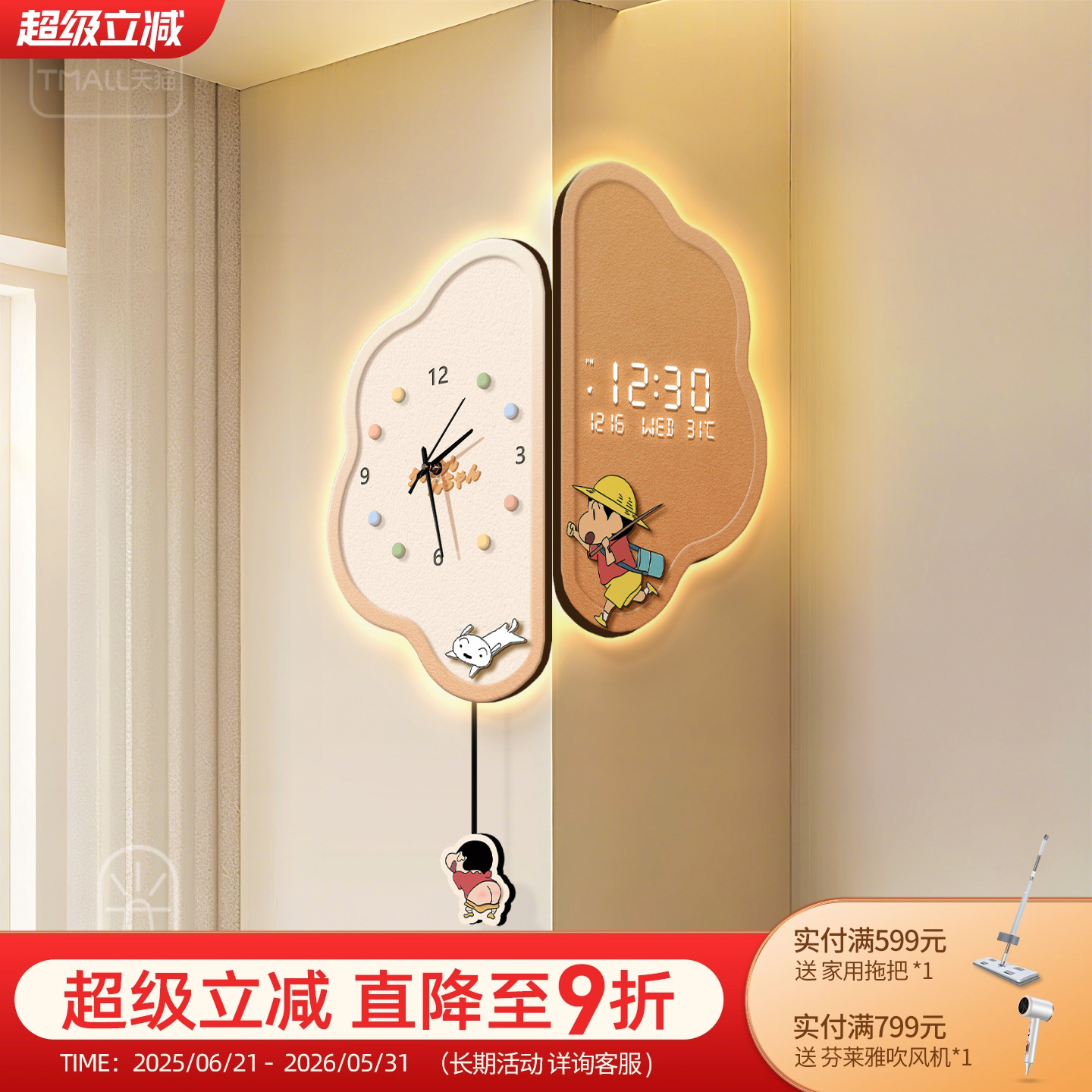 蜡笔小新转角时钟新款 家用挂墙钟表客厅万年历电子钟双面拐角挂钟