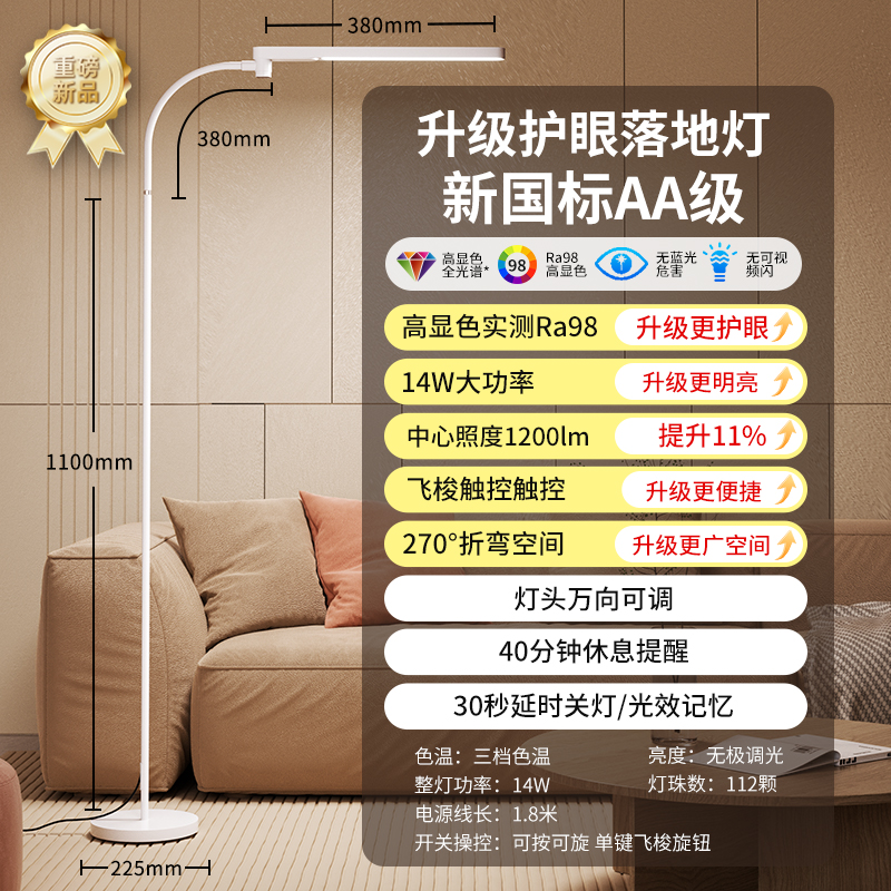 飞利浦F2护眼落地灯台灯儿童阅读全光谱床头客厅卧室led近视防控