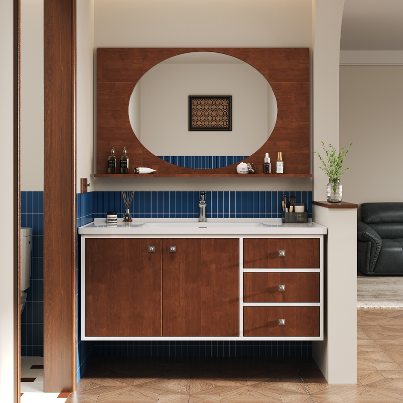 欧派陶瓷一体盆浴室柜组合中古风卫生间胡桃木洗脸盆洗漱台卫浴柜
