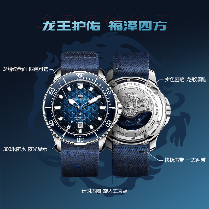 海鸥表手表男士 海洋系列pro系列四海龙王潜水机械表1216
