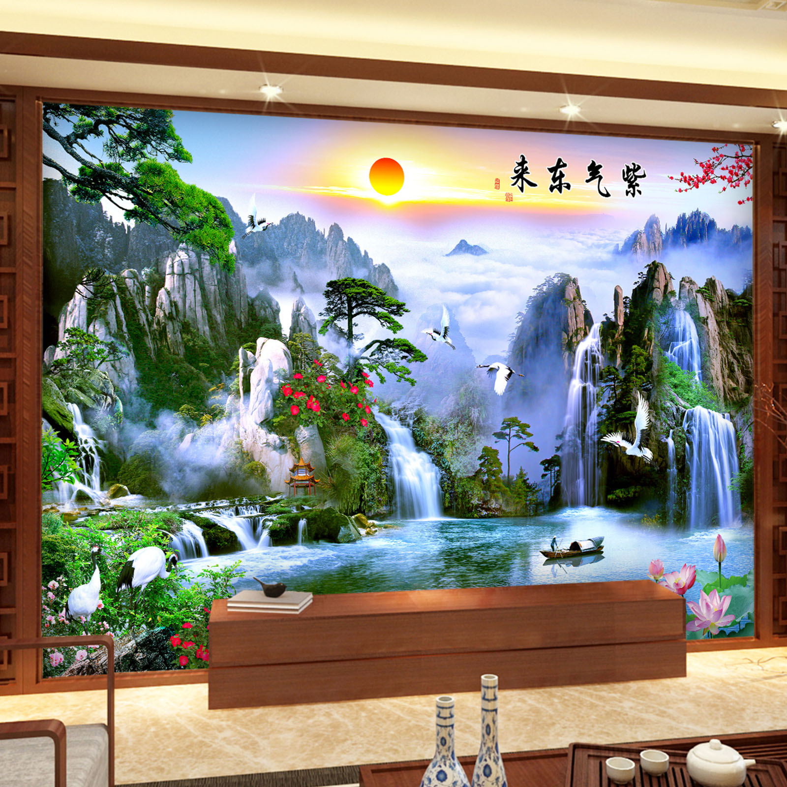 床头贴画装 饰画客厅沙发背景自粘卧室墙贴3D现代风景轻奢山水墙纸