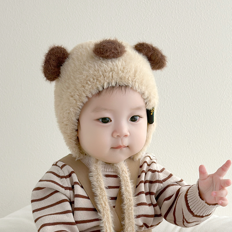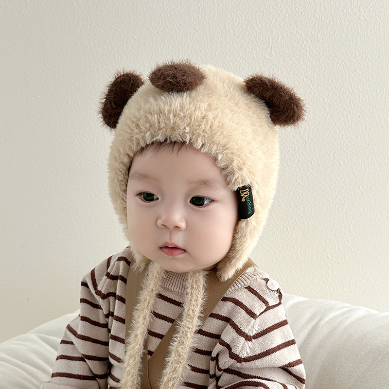 婴儿帽子秋冬季 宝宝护耳毛绒帽婴幼儿可爱毛线帽冬帽加厚保暖冬季
