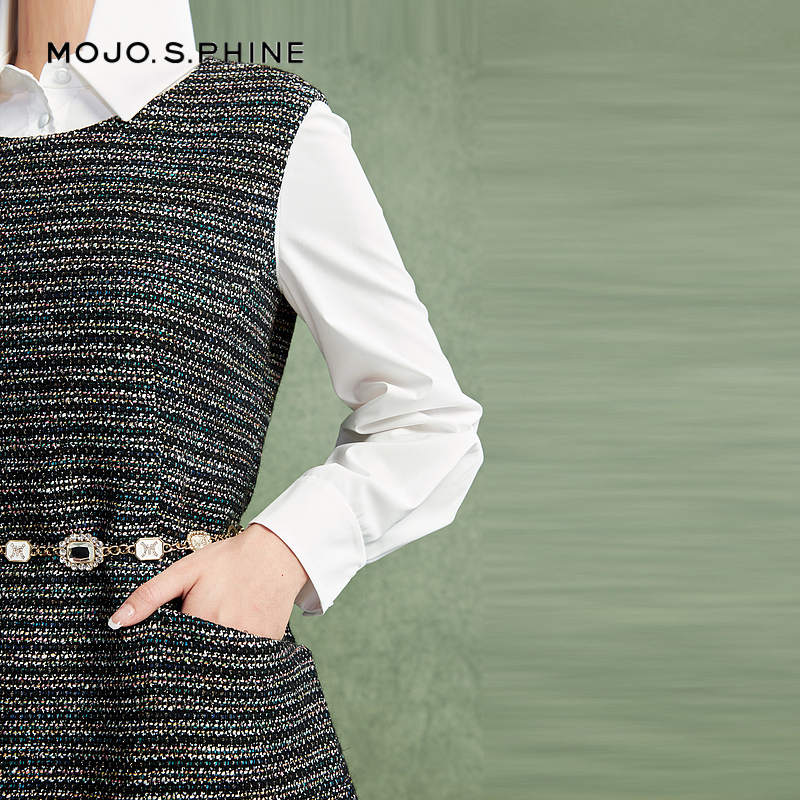 下摆珠片花朵裙子 新款 乐町学院风假两件荷叶边连衣裙女装 2025秋季