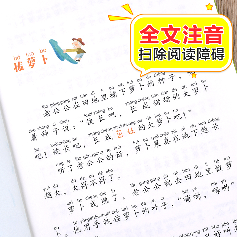 小学生二年级儿童绘本故事书1年级上册带拼音 拔萝卜注音版 俄阿托尔斯泰 书籍 课外童话读物苏联阿尼 一年级阅读课外书必读正版