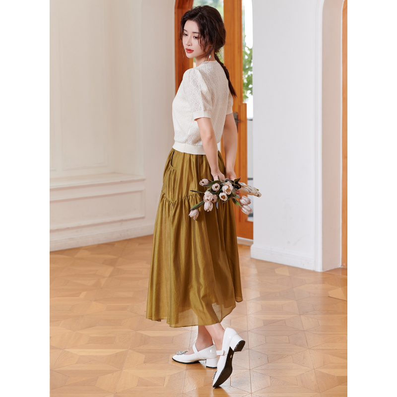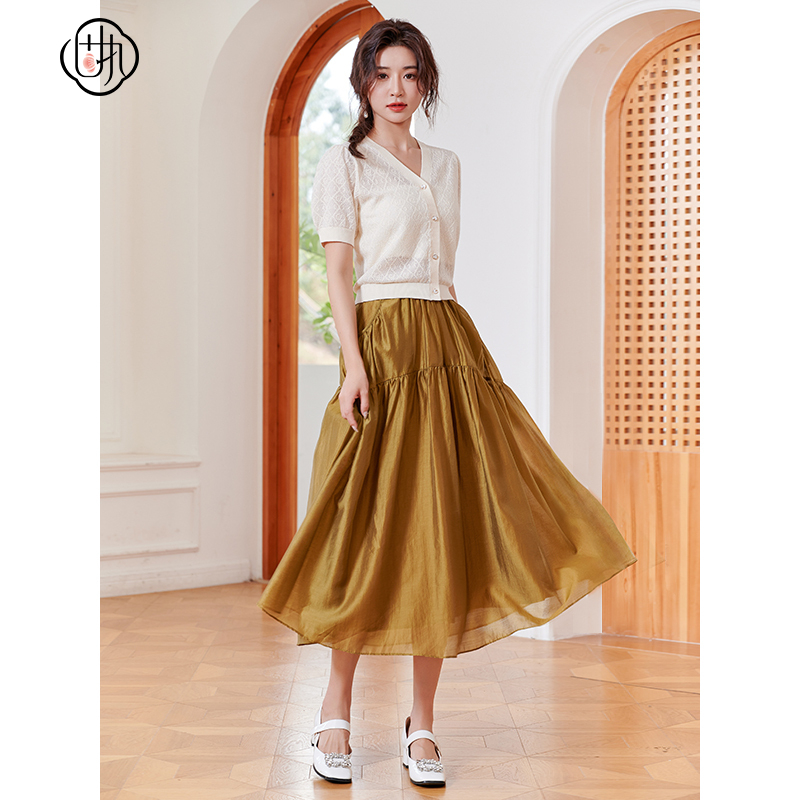 夏季 森马半身裙女松紧腰慵懒2025新款 肌理A字裙山本风 商场同款