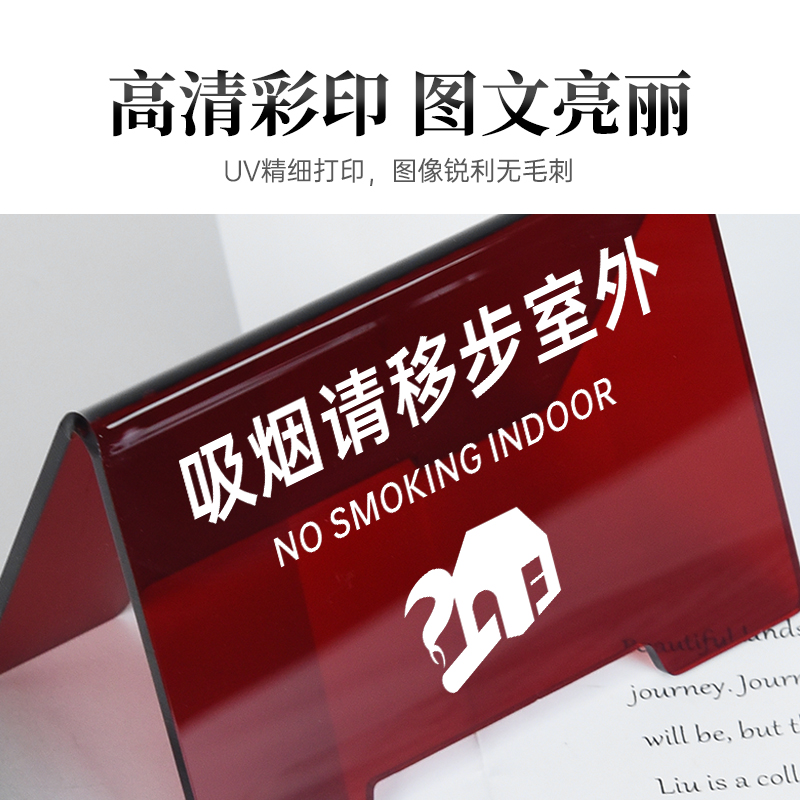时尚 彩透亚克力禁止吸烟双面台牌定制请勿吸烟感谢您不吸烟桌面展示牌酒店包厢请勿卧床吸烟温馨提示牌定做作