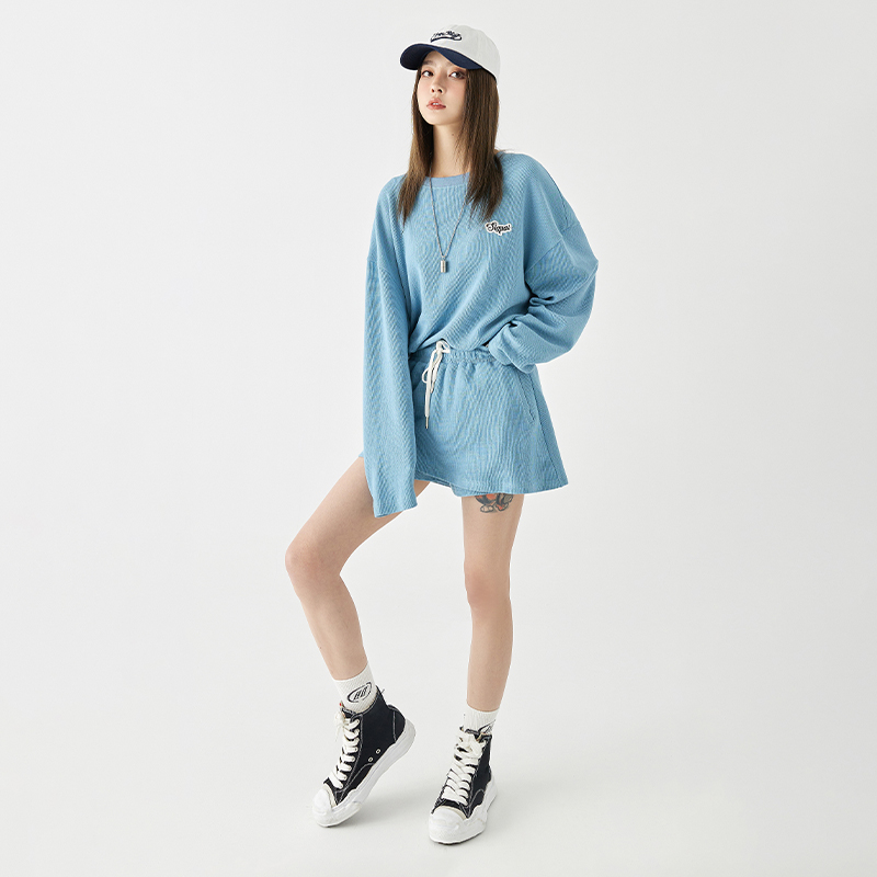 休闲两件套春秋 女2025新款 TurnSignal潮牌华夫格卫衣短裤 运动套装