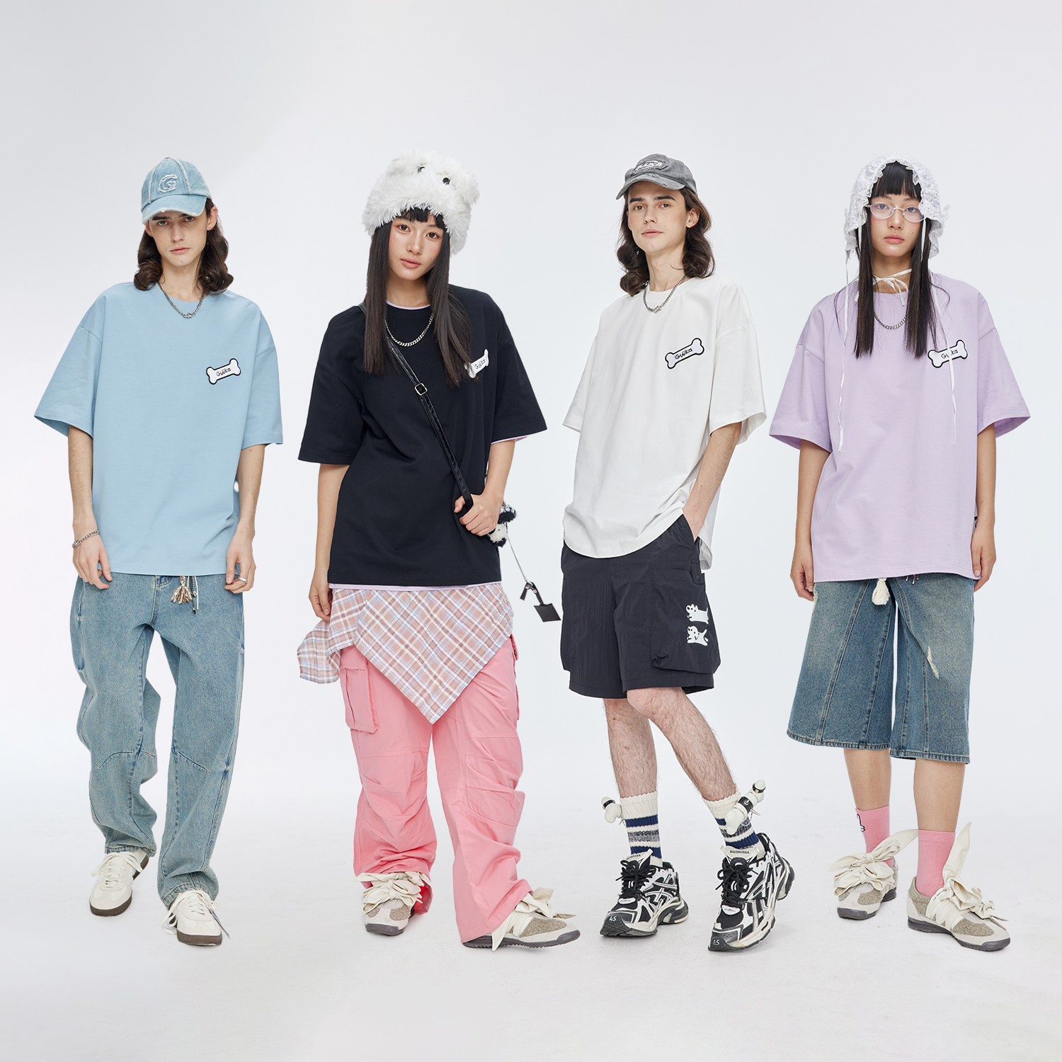 纯棉落肩半袖 T恤男夏 宽松 GUUKA&matsui联名小狗重磅短袖 明星同款