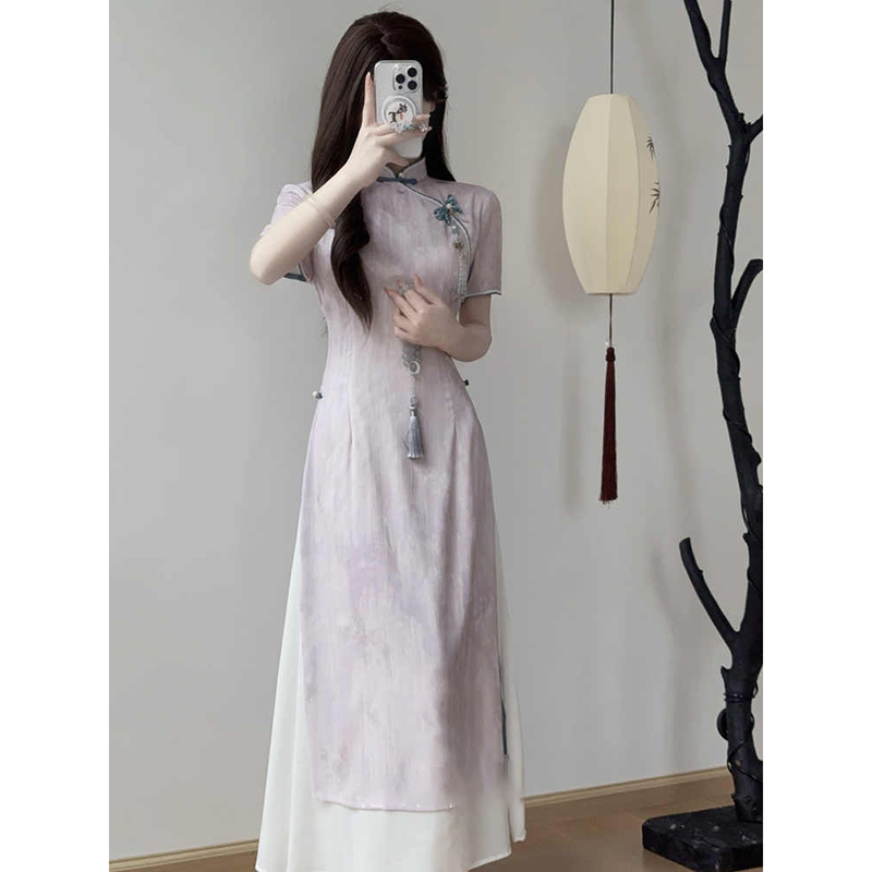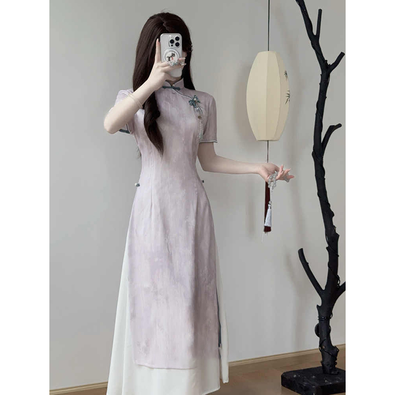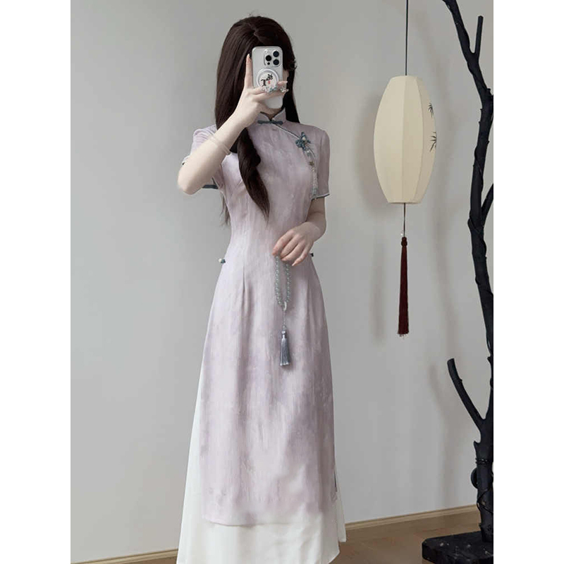 连衣裙小个子 国风女装 奥黛新中式 旗袍订婚礼服女夏平时可穿年轻款