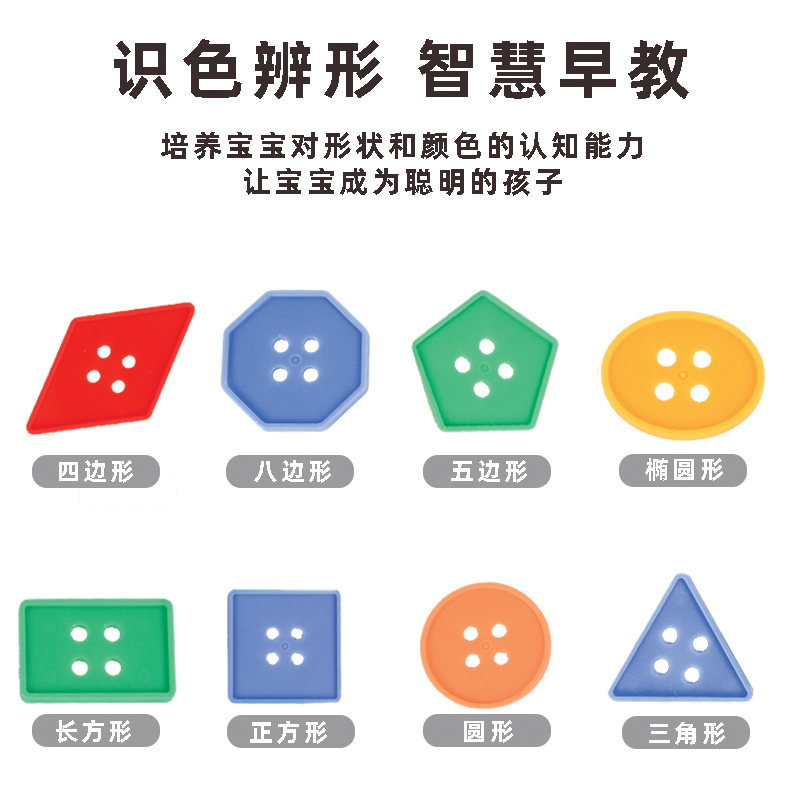 早教几何纽扣穿线积木益智玩具幼儿园启蒙颜色认知益智1 3岁积木