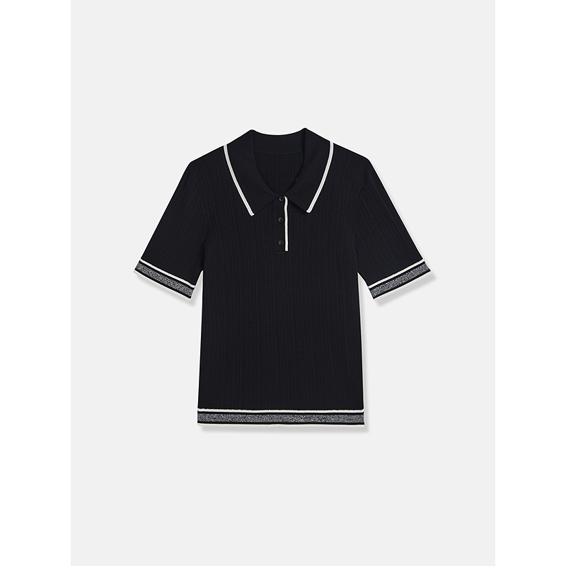 撞色POLO领莱赛尔天丝醋酸混纺针织衫 YINER音儿专选2025夏季 新款