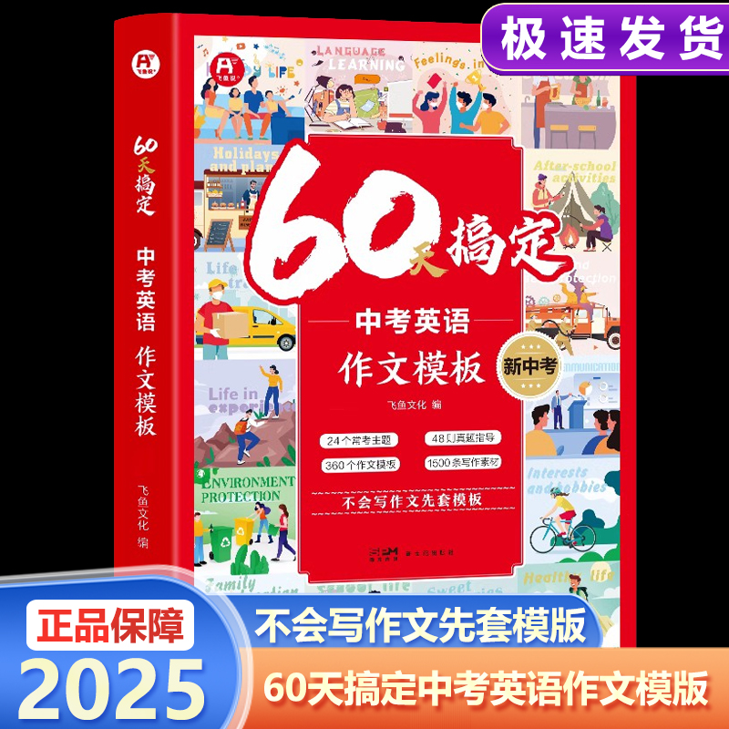 飞鱼说60天搞定中考英语作文万能满分模版 写作指导素材七八九年级英语作文大全初一初二初三英语写作素材中考英语范文写作技巧书籍