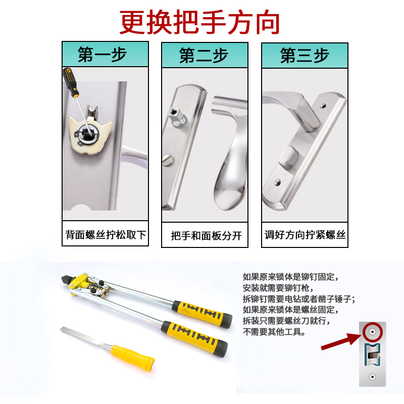 卫生间门锁不锈钢通用型无钥匙静音室内铝合金门把手厕所浴室锁