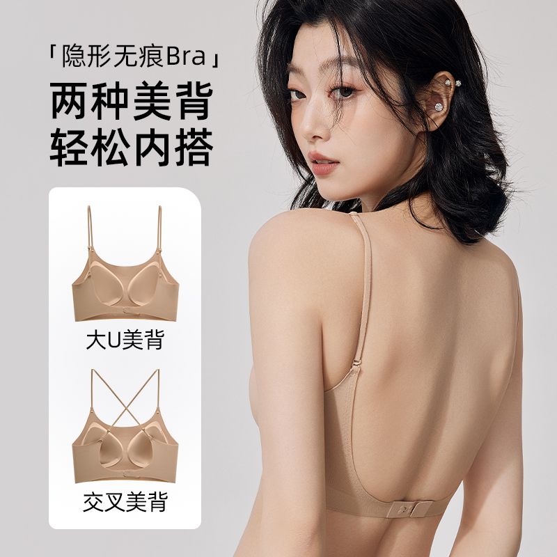 无痕美背抹胸内衣女小胸聚拢可外漏细肩带一体固定杯背心式 文胸罩