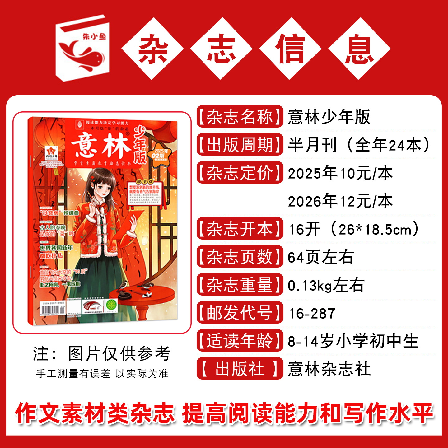 杂志2025年11月 意林少年版 2026年10月共12个月24期少年科学小国学初中小学生作文素材儿童文学文摘非过刊 全年订阅 送6个本