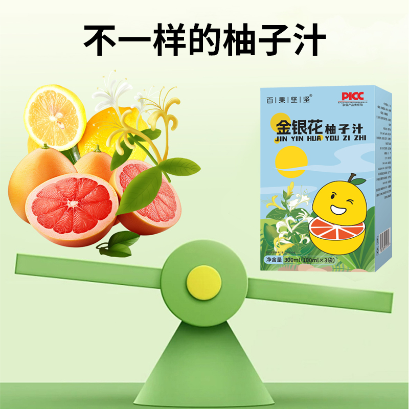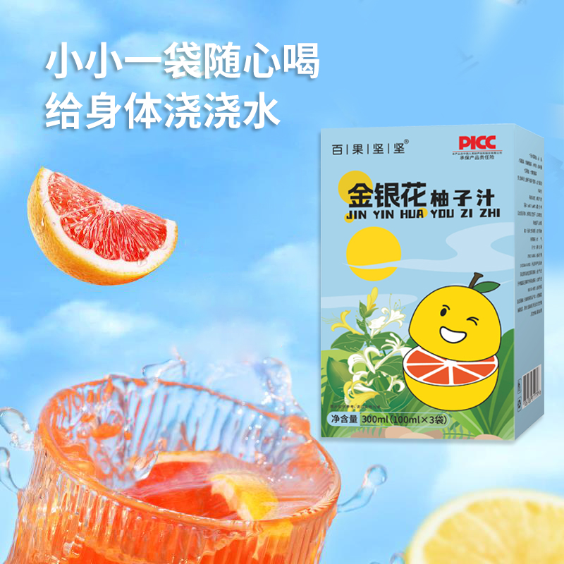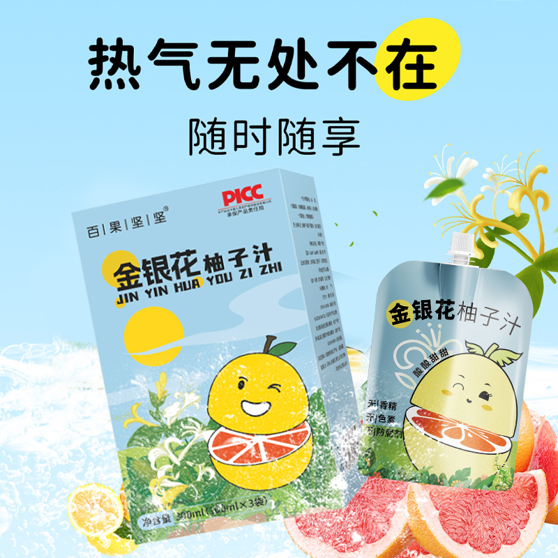 百果坚坚金银花柚子汁袋装 儿童成人下火西柚植物饮料果汁开袋即食