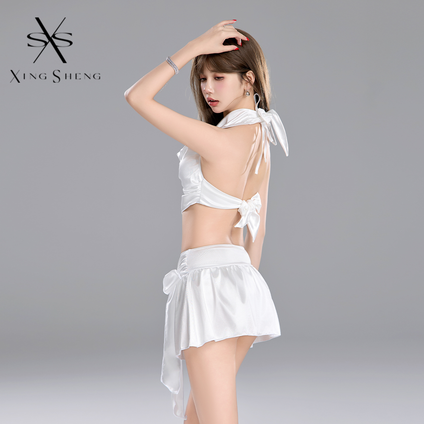 白色分体比基尼泳衣女三件套性感泡温泉钢托聚拢小胸纯欲海边度假