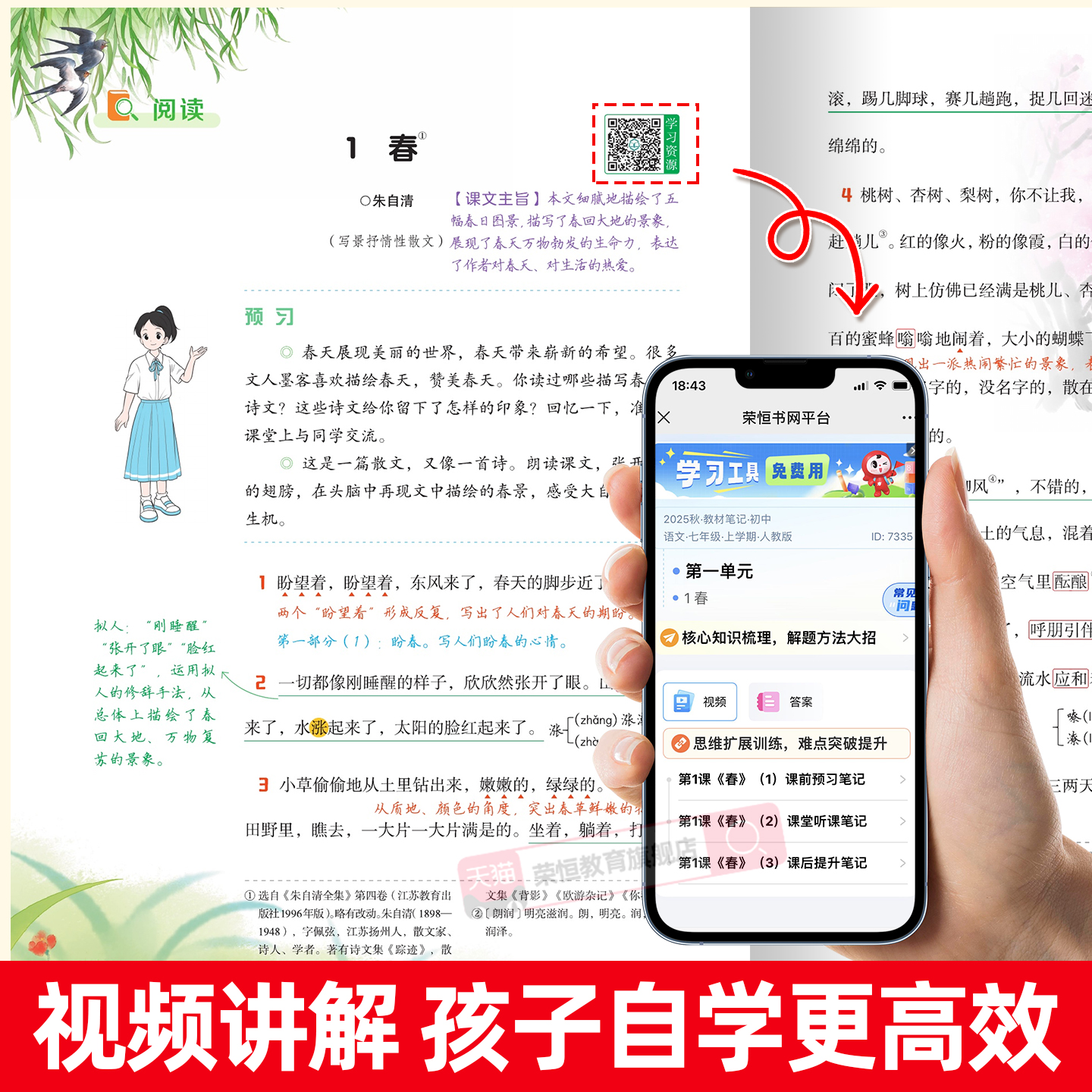 学霸笔记初一基础知识点汇复习 同步课本预复习小升初暑假预复习人教版 2025新版 七年级上册教材笔记语文数学英语全套课堂笔记人教版