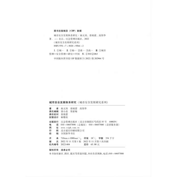 高伟华著 张晓蕾 9787502095642 杨文涛 城市安全发展体系研究