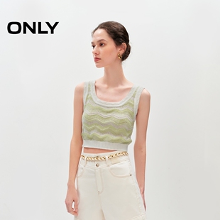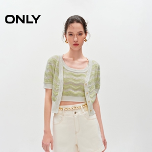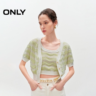 针织衫 ONLY夏季 短袖 短款 女 气质百搭舒适透气甜美条纹V领套装