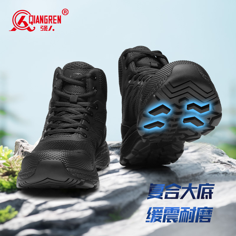 透气黑色轻便战术靴网眼训练靴 夏季 强人3515超轻马丁靴男士 高帮鞋