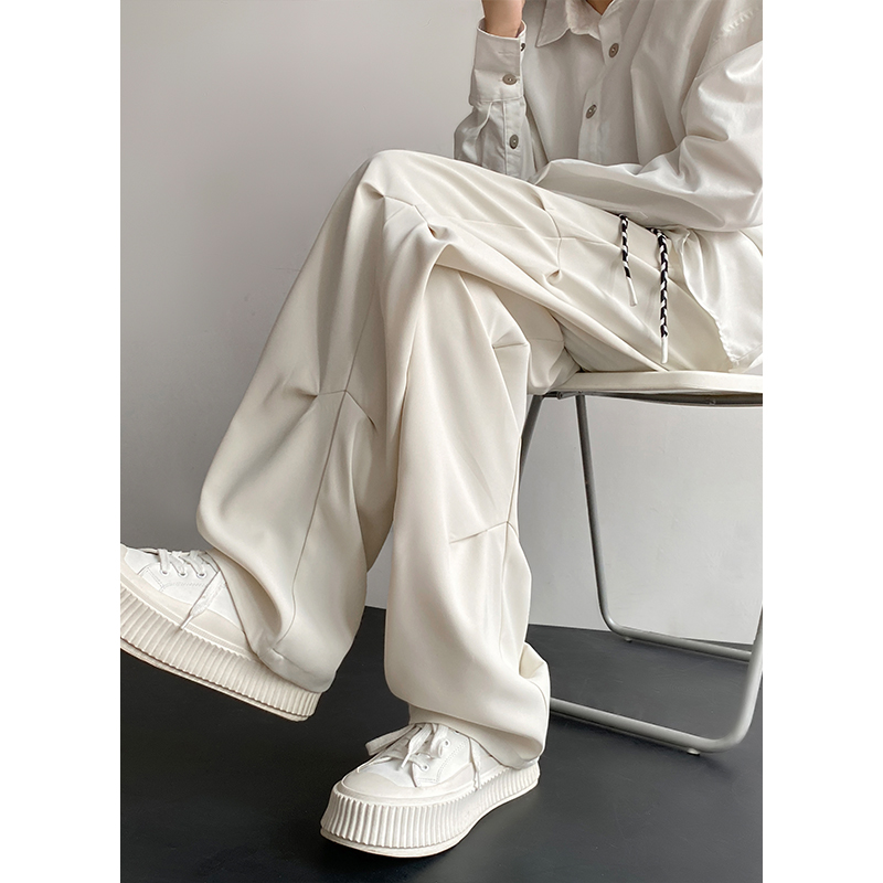 男夏季 裤 新款 高级感潮牌宽松阔腿西装 子 直筒休闲裤 褶皱垂感小西裤