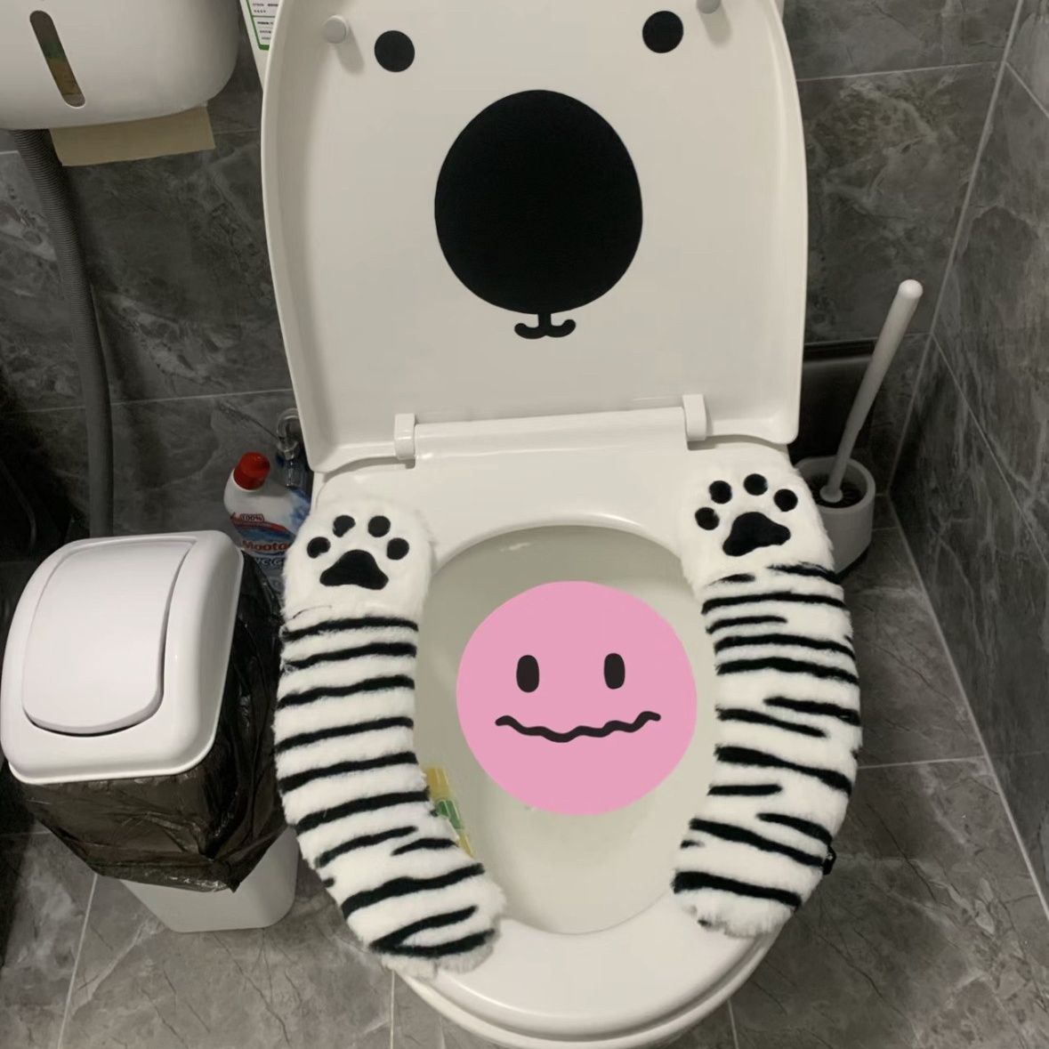 可爱卡通马桶坐垫家用高档防水粘贴式 毛绒加厚 坐便器垫圈套冬季