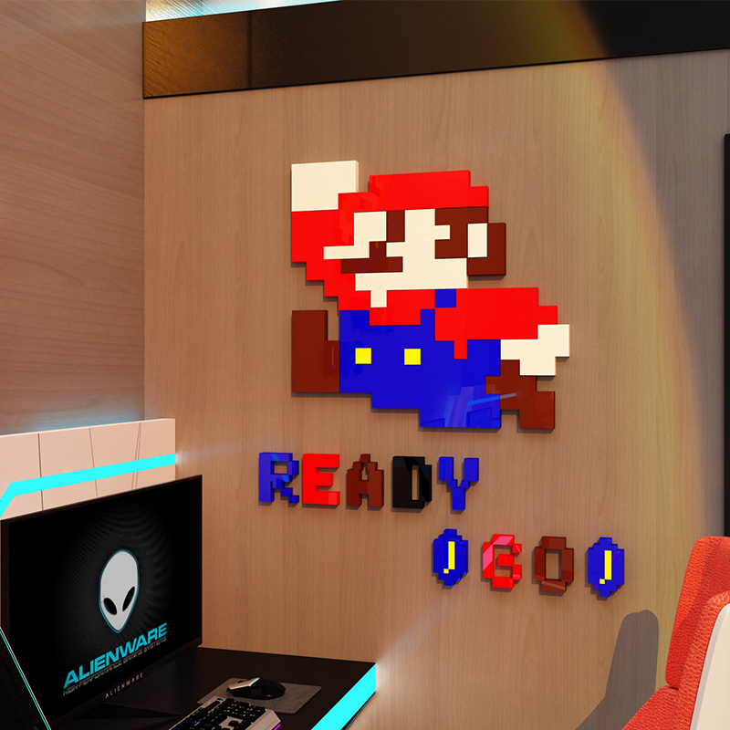 卡通儿童房间布置装 饰挂画卧室墙超级玛丽马里奥亚克力3d立体贴纸