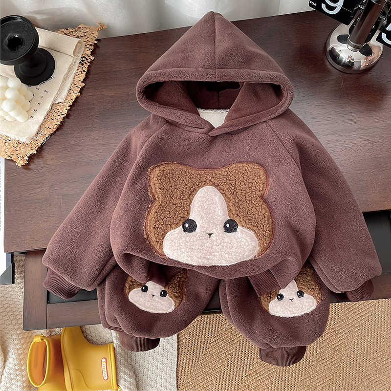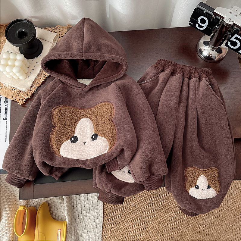 洋气儿童加绒加厚连帽卫衣套装 2025新款 宝宝套装 韩系男女童秋冬装