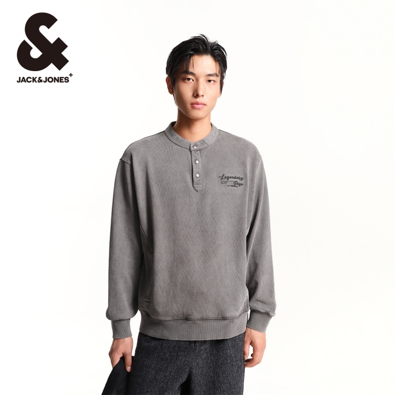 男装 杰克琼斯冬季 略宽松背部字母图案印花亨利领卫衣男款 时尚 新款