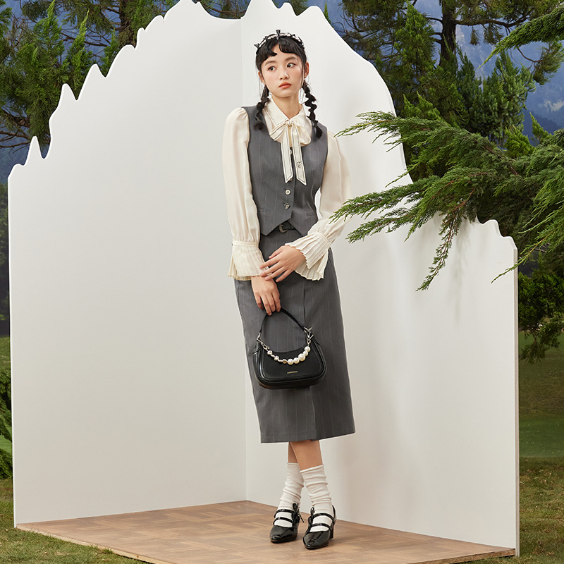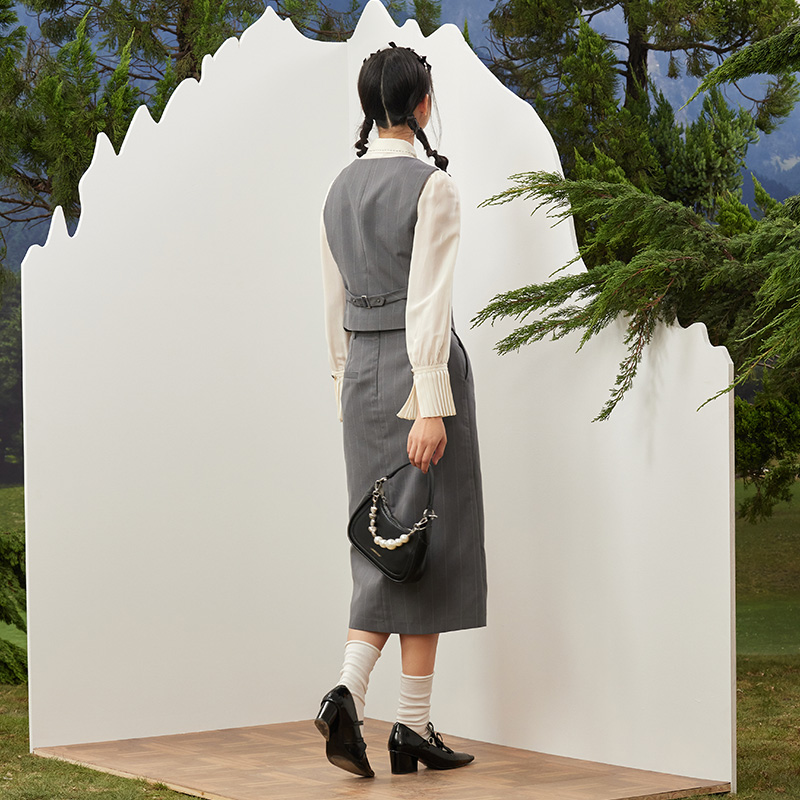 PIT复古高腰条纹半身裙新款 直筒显瘦百搭中长半裙 冬季