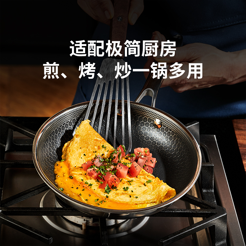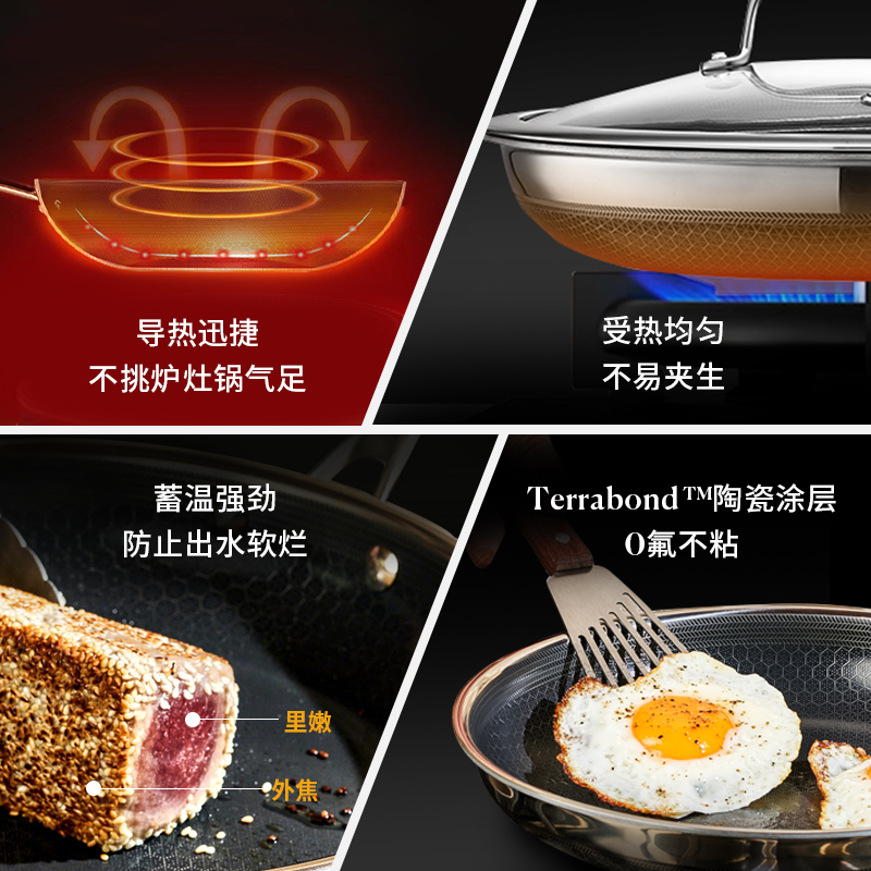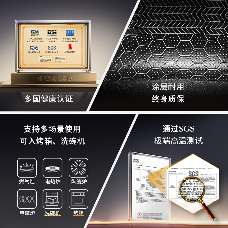 HexClad 平底锅米其林牛排煎锅不粘锅煎蛋家用电磁炉专用 星厨经典