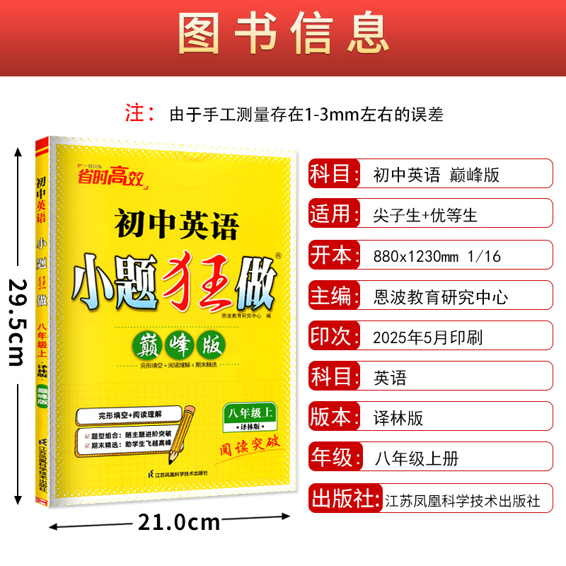 教材全解同步复习练习课时作业本教辅试卷资料恩波教育 初二8上YL初中苏教版 2026新初中英语小题狂做巅峰版 八年级上册江苏译林版