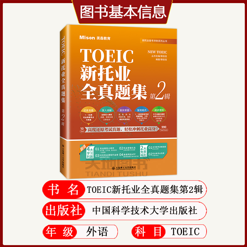 托业英语考试用书托业考试 美森教育TOEIC新托业全真题集 托业题库托业全真题库 4套托业全真模拟试题 ETS出题特点命题规律 第2辑