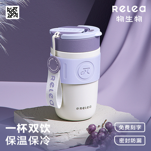 物生物保温杯女高颜值2025新款 水杯男咖啡杯学生上学专用吸管杯子