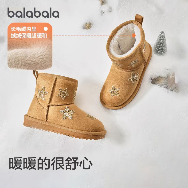 厚 童鞋 巴拉巴拉女童雪地靴儿童靴子大童加绒棉靴短靴保暖冬季 新款