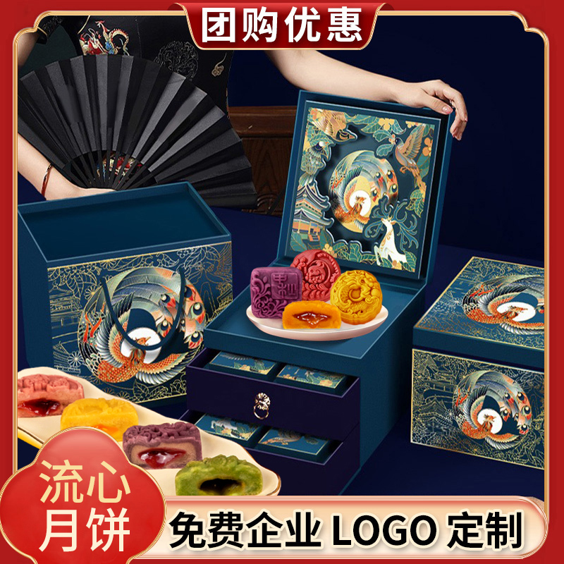中秋节月饼礼盒装 流心桃山皮多口味企业员工定制logo高档 送礼广式