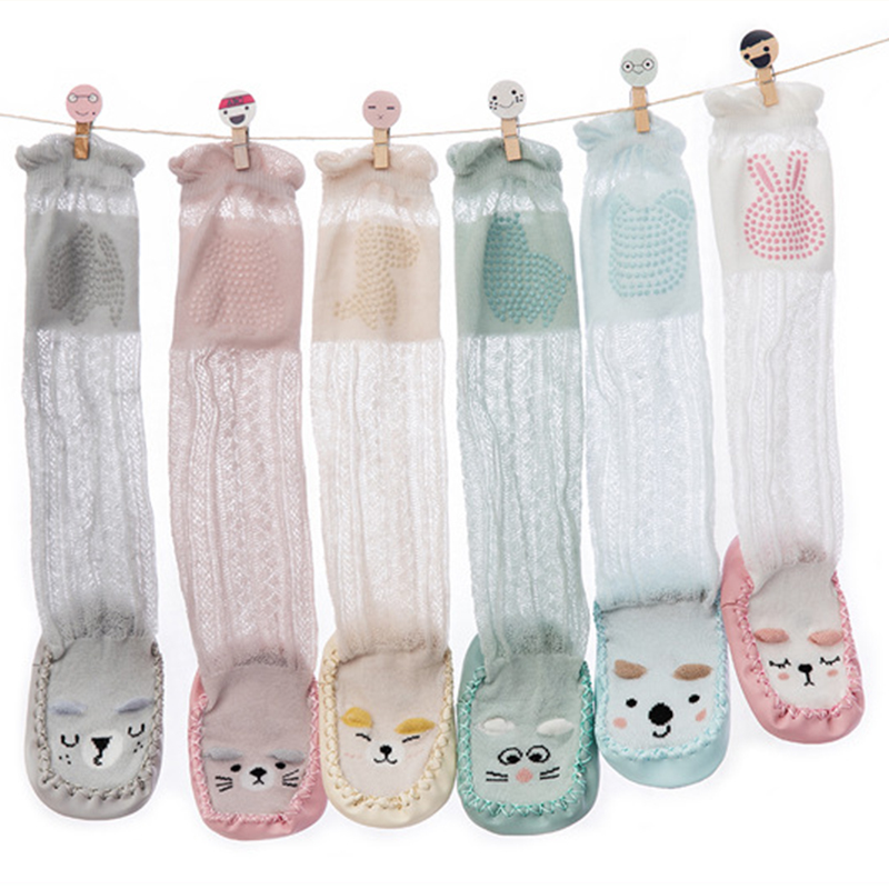 女童防滑地板袜婴儿夏薄早教防滑长筒婴儿学步袜可爱卡通护膝鞋 袜
