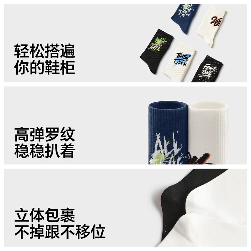 短袜防臭7a抗菌运动长筒潮 棉袜男士 白色袜子男款 中筒长袜秋冬薄款