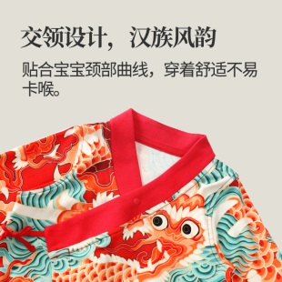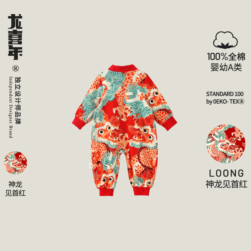 龙喜年婴儿满月宝宝衣服女红色新中式 周百日百岁宴男连体礼服秋冬