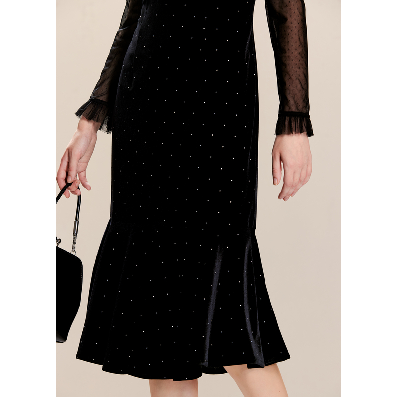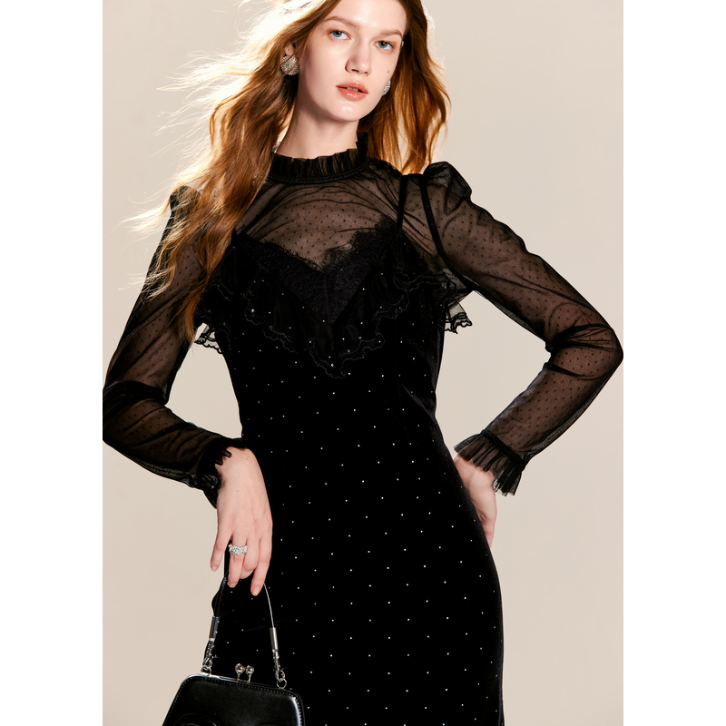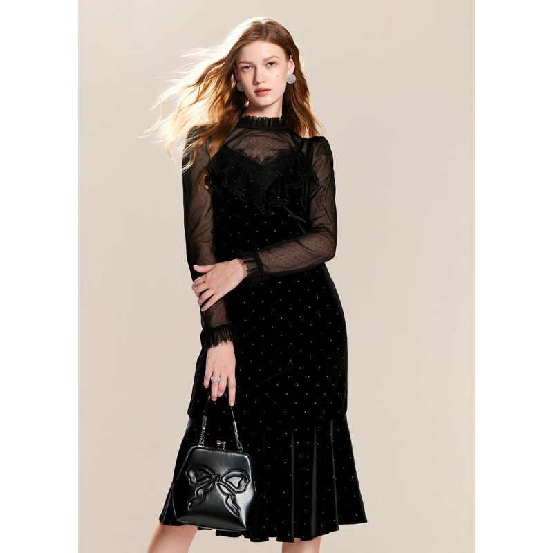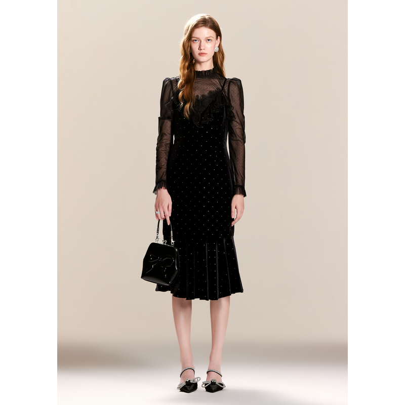 可可尼cocoon蕾丝吊带裙套装 女2024新年穿搭战袍黑色气质连衣裙女