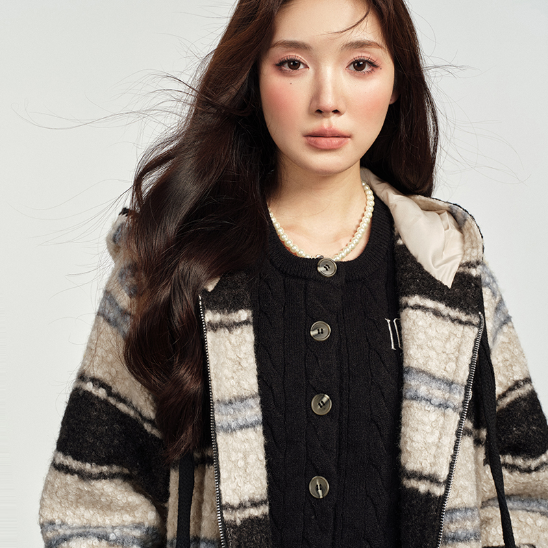 外套 开衫 ics iconslab圈圈条纹毛呢卫衣2024秋冬情侣男女同款
