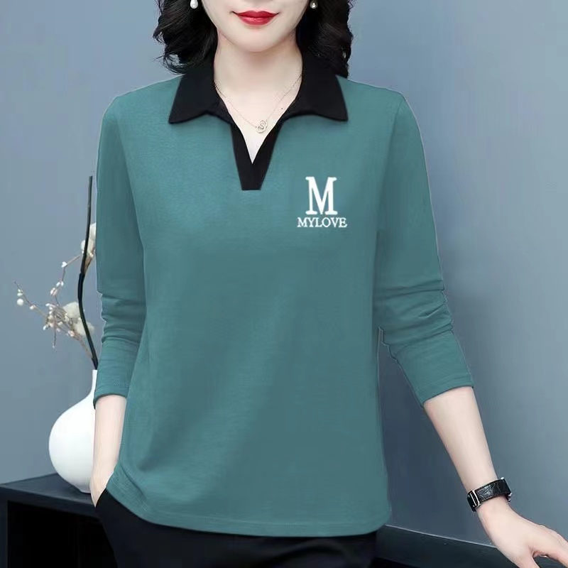 大码 纯棉秋季 薄款 t恤女时尚 宽松中年妈妈洋气上衣 翻领印花polo衫